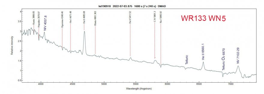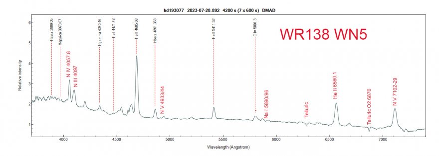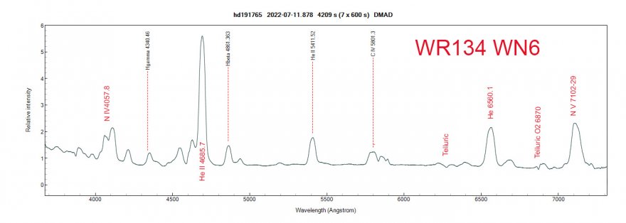 stelle con righe dominanti di azoto ionizzato (N III , N IV e N V )suddivise nelle sequenze di temperatura WN5-WN8 basate sui punti di forza relativi delle linee 541,1 nm He II e 587,5 nm He I.