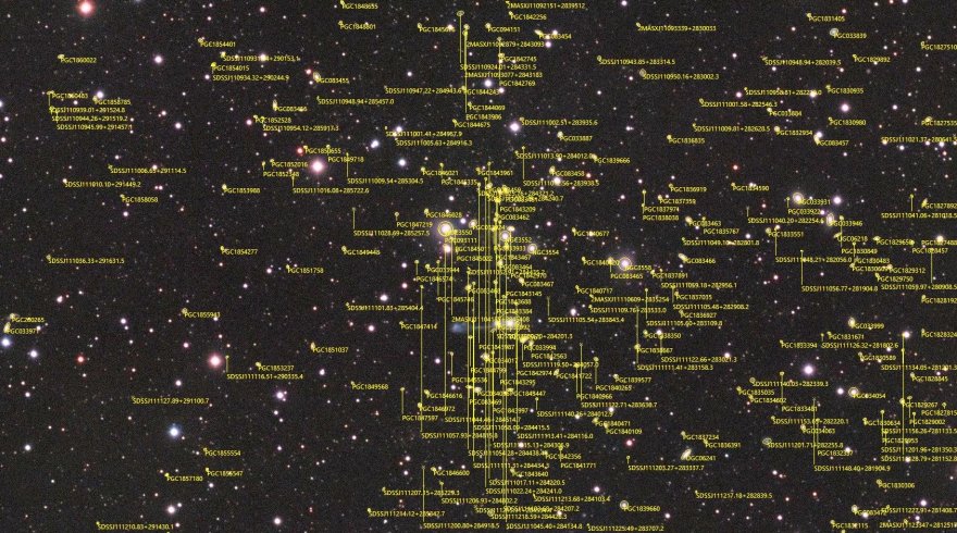 Allego la tua foto parzialmente risolta con gli oggetti HyperLeda. Anche in questo caso servirebbe la full resolution: