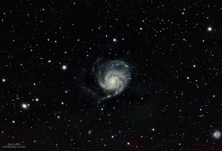 Ho utilizzato il rifrattore Askar APO 120 con riduttore 0,8X su montatura Heq5 pro , camera Asi 294 mc pro color gain 120 t 0°C e filtro l-pro Optolong ,autoguida (telescopio evoguide 50 e camera asi 120 mc-s , tutto guidato dall' Asi air pro .