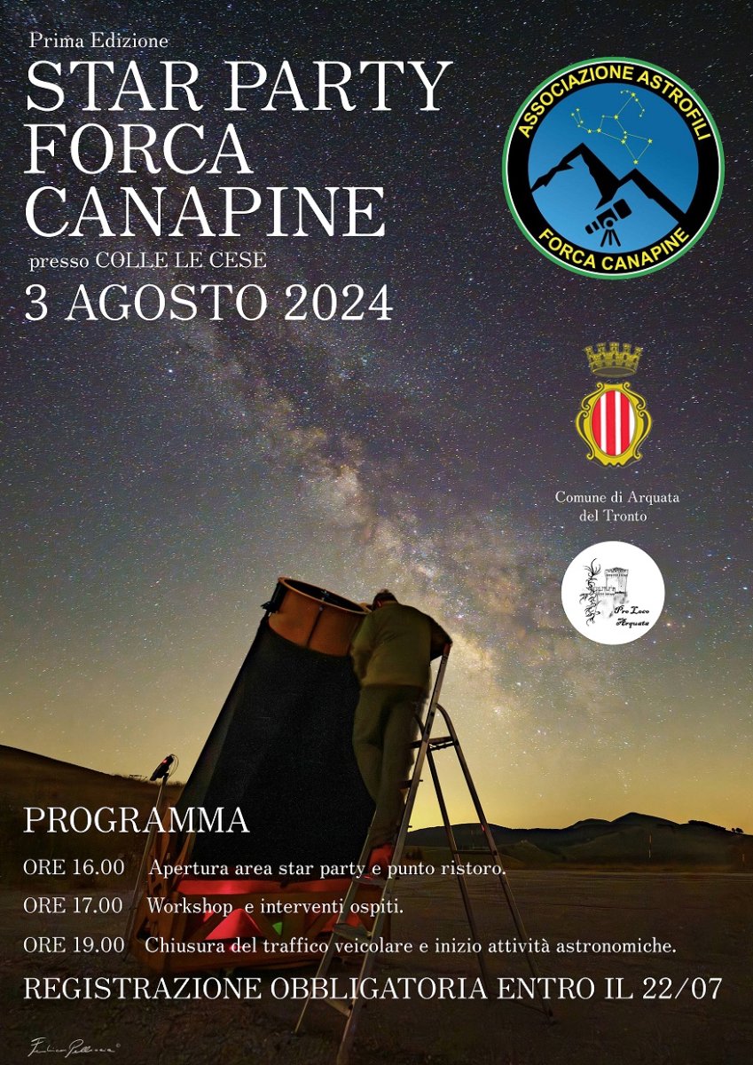 REGISTRAZIONE OBBLIGATORIA sul sito dell'associazione Astrofili Forca Canapine: https://www.astroforcacanapine.it/MainPrenotazione.aspx
