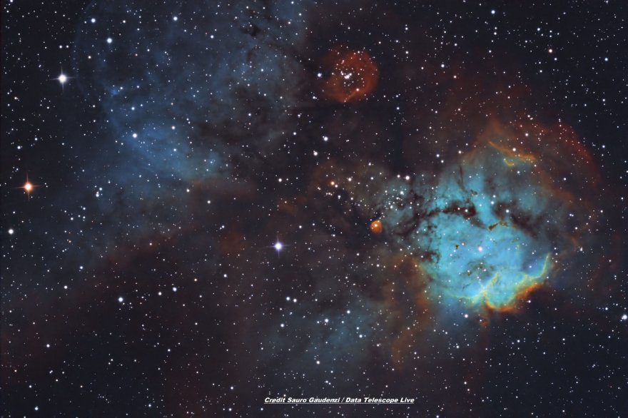 RCW 16, 60 minuti di integrazione in SHO con telescopio Planewave CDK24 610/3962 f 6/5, camera QHY 600M Pro, sono 12 scatti, 4x300 secondi per ogni filtro, elaborazione con Pixinsight. Tutti i dati e scatti sono stati acquisiti con Telescope Live. RCW 16 chiamata anche Sh2-311, Gum 9, NGC 2467, a volte chiamata nebulosa Mandrillo, è ionizzata dalla stella ultracalda O3 V HD 64568, dalla subgigante O6 IV HD 64315 e dalla stella B0 V LSS 830, secondo Avedisova. Oltre all'ammasso stellare NGC 2467, comprende gli ammassi stellari Haffner 18 e Haffner 19. La stella luminosa in primo piano all'estrema sinistra dell'immagine è la subgigante B8 IV HD 64455.