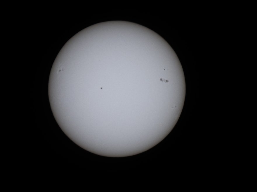 stavolta infatti ho dovuto schiarire un po' l'immagine del Sole, che oggi presenta vari gruppi di sunspot, uno dei quali emerso da poco dal bordo.