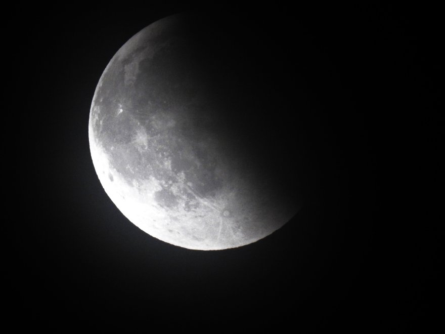 Il mio secondo nome è Sfortuna. Mi ero posizionata su un'altura e sapevo esattamente da dove sarebbe dovuta sbucare la Luna. Ero convinta che entro le 8 l'avrei vista ma si erano fatte le otto e venti e non si vedeva nulla. C'era parecchia foschia ma pensavo che la Luna si sarebbe comunque vista. Allora sono andata via alla ricerca di un posto migliore, vado in giro di qua e di là per una buona mezz'ora ma non riesco a beccarla da nessuna parte. Mi arrivano un sacco di messaggi da amici: Hai visto la Luna che bella? E io non la vedo. Poi torno nel posto dove mi ero messa prima ed eccola lì, già alta che sta riemergendo dall'ombra. Ho fatto pure qualche foto ma la parte più bella me la sono persa. Se fossi rimasta lì, nel giro di qualche minuto l'avrei vista spuntare