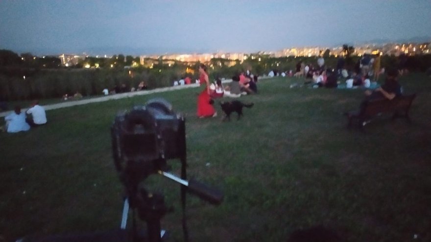 mentre nel corso degli anni ci sono state ogni volta al massimo una o due persone, ieri invece c'era almeno un centinaio di persone: famiglie con bimbi, cani, palloni e frisbee con solo pochi altri con fotocamere che non siano i cellulari (assolutamente inutili in questi casi...)