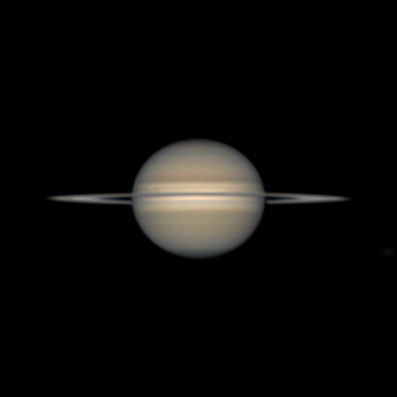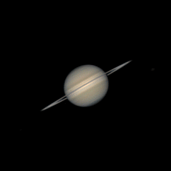 Qui una breve gif del passaggio di Teti sul disco di Saturno. E' chiaramente visibile l'ombra, ma subito alla sua sinistra noterete una macchia bianca che interrompe una sottile linea scura. Quella macchia è Teti. La ripresa risale all'11 settembre intorno alle 22 UT.