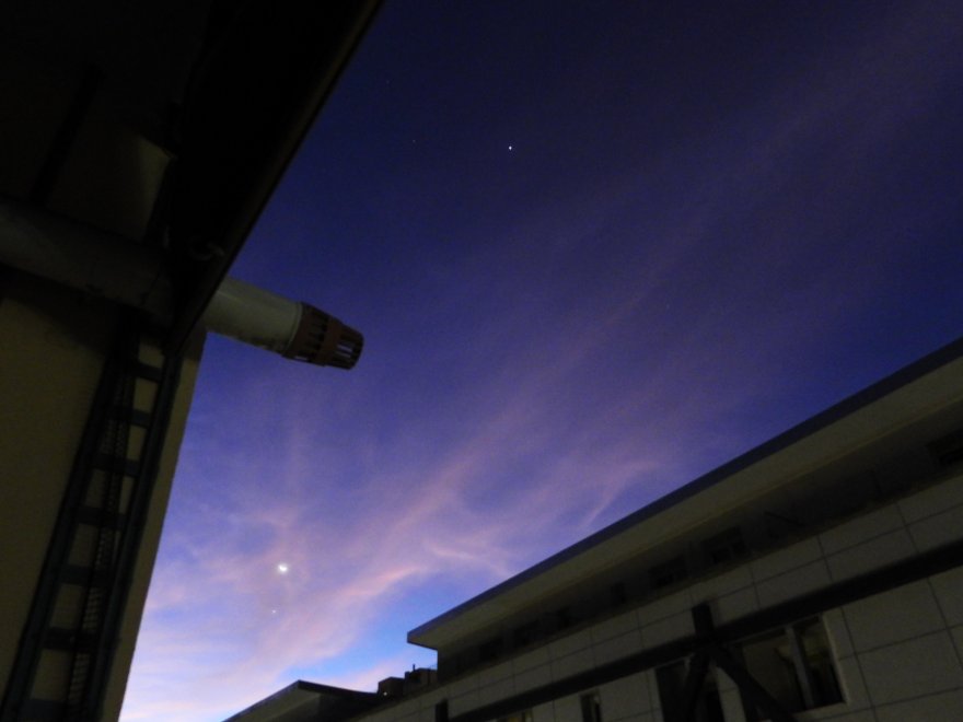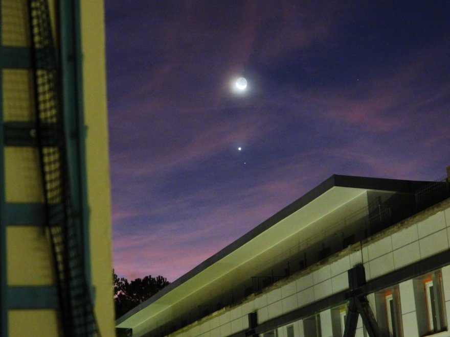 ho ottenuto qualcosa di molto simpatico, tremolante per via dell'agitazione atmosferica (le nuvolette rosate delle foto precedenti) e in movimento perché il treppiede è altazimutale.