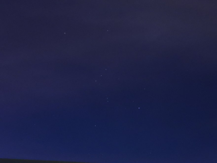 Invece verso Sud, sempre tra le nuvolette, si intravvedeva la maestosa costellazione di Orione con il cielo già abbastanza chiaro
