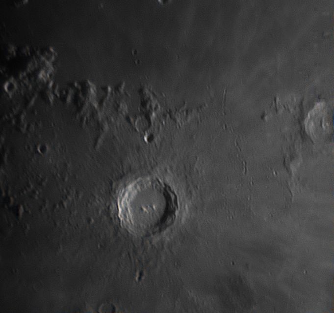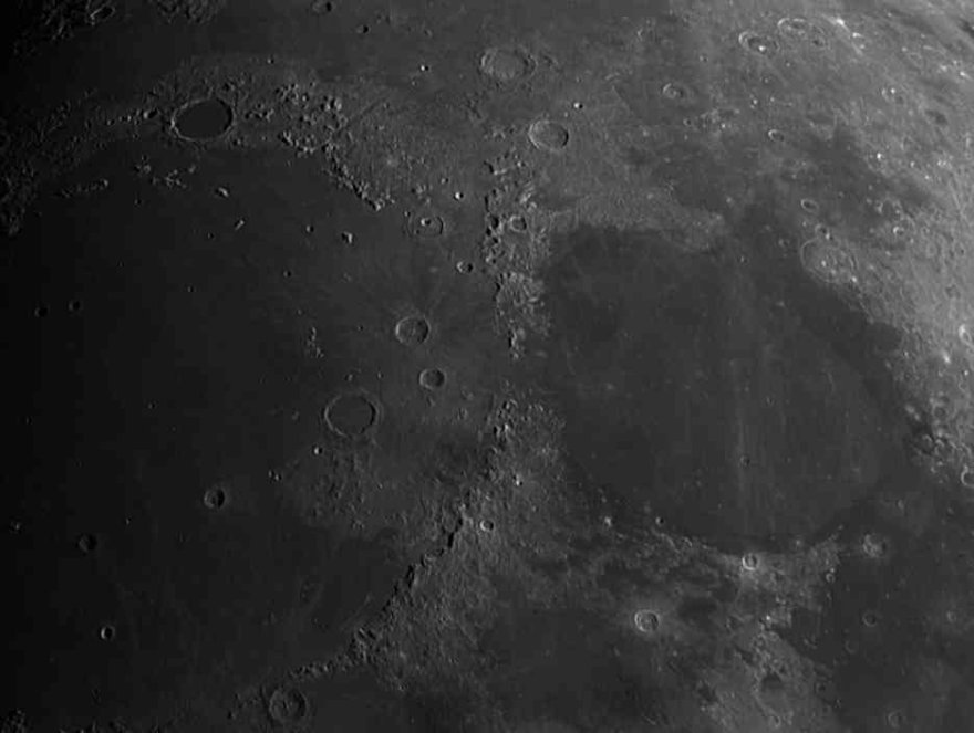 Il cielo era pulito al tramonto ma poi è peggiorato esponenzialmente, infatti le foto che mostro sono state fatte già quando un leggero velo copriva la luna e poco dopo sono dovuto andare via perché il cielo è diventato nuvoloso. Nonostante ciò sono riuscito anche a fotografare dettagli meno visibili della Luna, come ad esempio i crateri secondari intorno :).