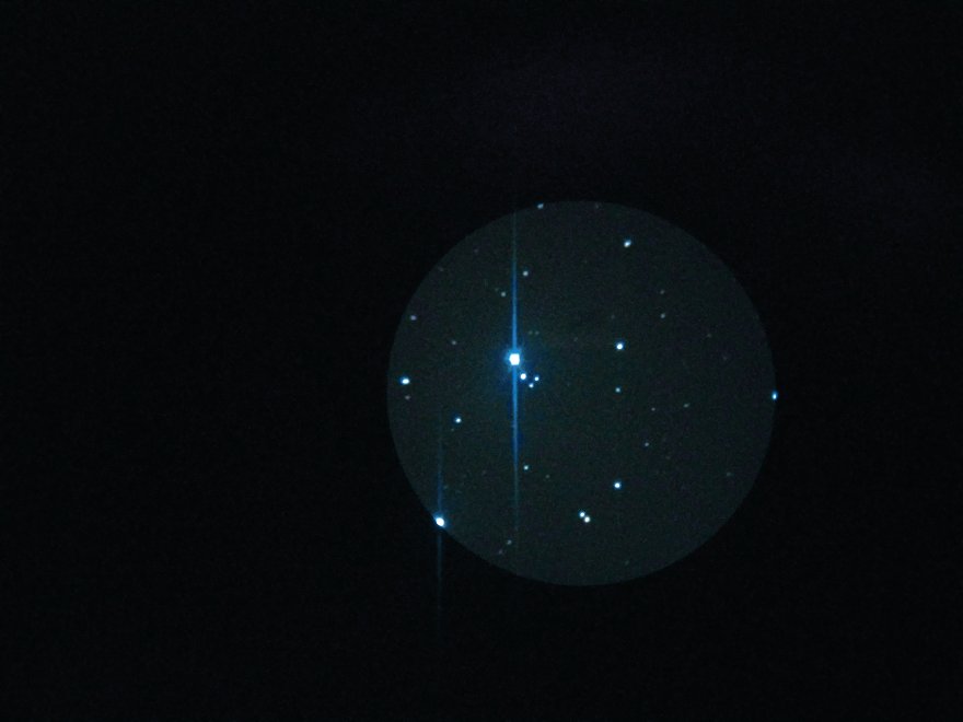 Qualche sera fa (di cui non ho fatto report perché è stata la serata di sperimentazione del motore orario, quindi è stata una serata di aggiustamenti tecnici più che altro) ho provato con le Pleiadi, con questi risultati: