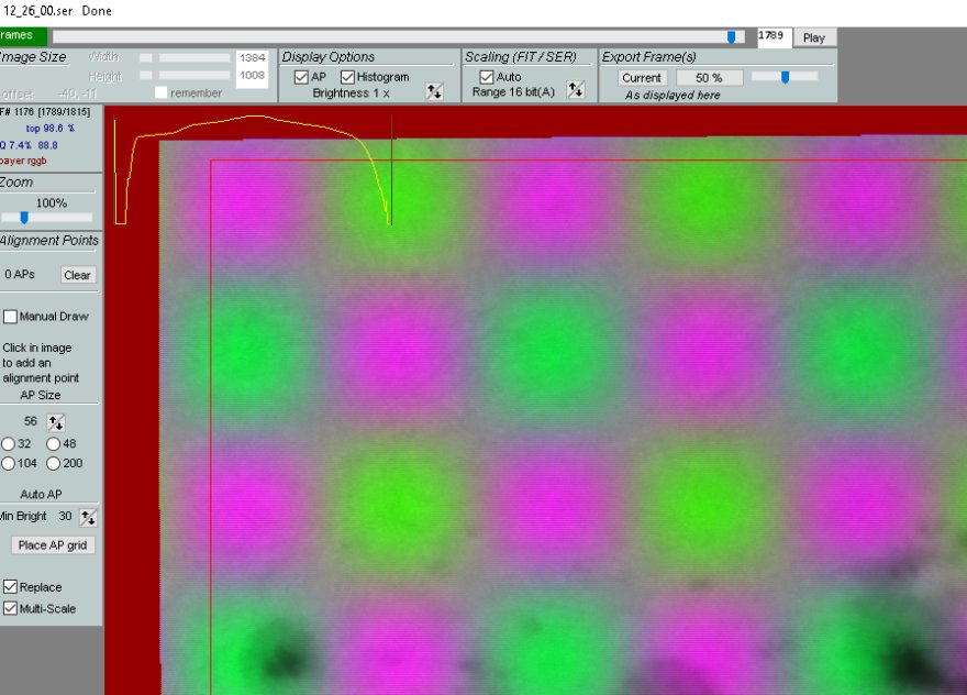 Sto processando alcuni file prodotti da una ASI224 che non mi ha mai dato problemi, ed ottengo delle immagini che hanno un pattern colorato.