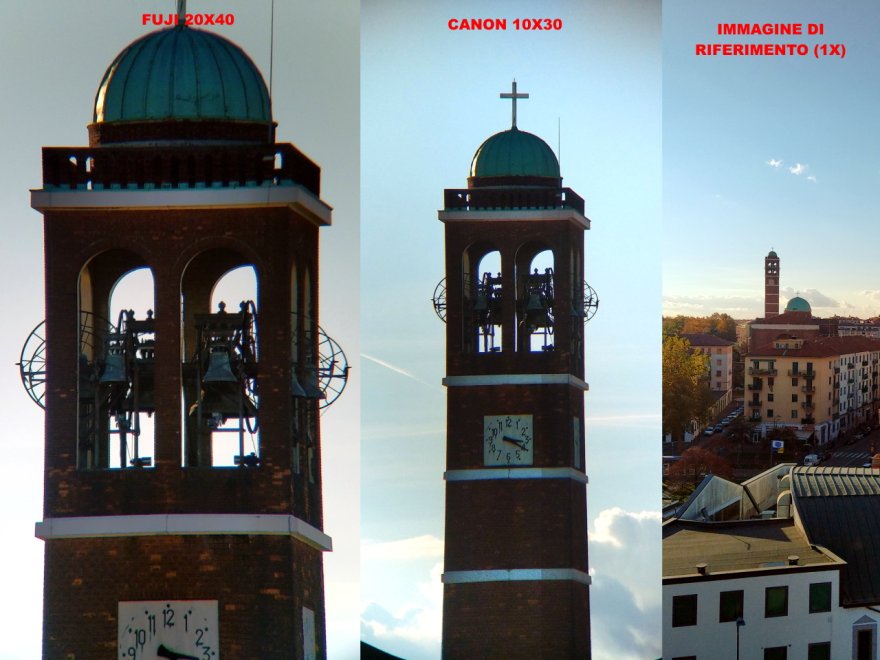 Ho apparecchiato il WO 22x70 (3° di campo), il "Doc" 40x80 (2,1° di campo) e ovviamente il Fuji 20x40 (3,4° di campo), più che altro mi interessava fare un confronto in "alta risoluzione" (:thinking:) con target di alto contrasto; i primi due montati, il terzo sia montato che a mano con stabilizzazione attiva.