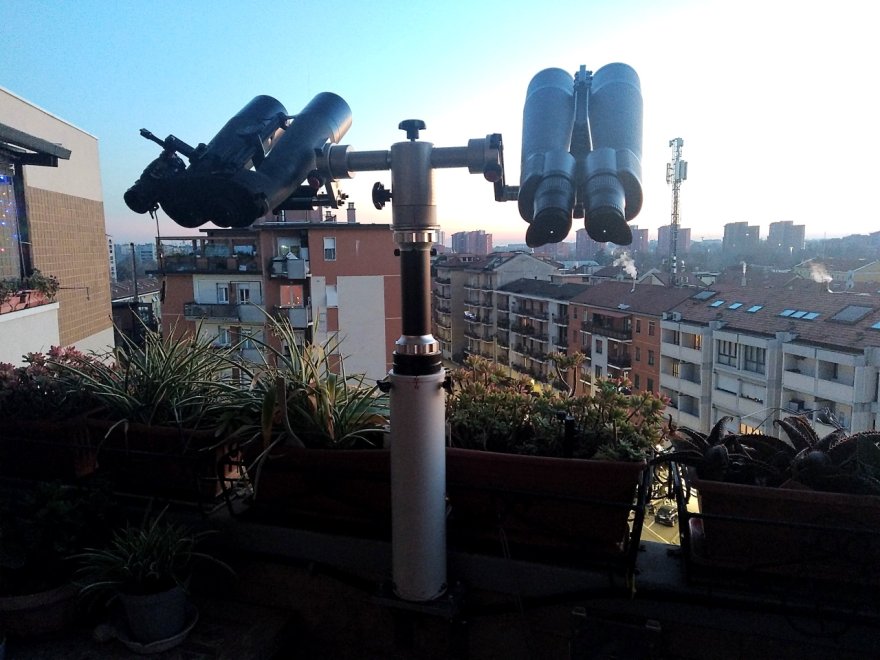 Non centrano nulla con quello che si vede in visuale, ma allego tre immagini scattate col cellofono attraverso i tre binocoli, nell'ordine 20x40, 22x70 e 40x80 come si vede, nemmeno elaborate (a parte le regolazioni automatiche del cellofono).