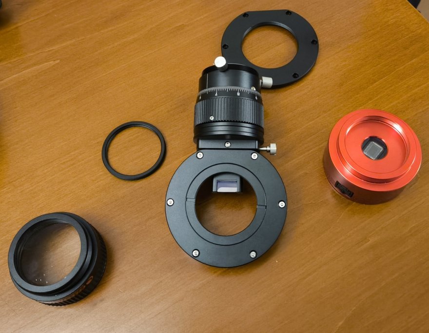 Ho comprato la guida fuori asse della svbony, OAG sv238, e l'ho messa sul tavolo, con tutti gli adattatori inclusi nella confezione, insieme al riduttore della celestron f/6.3 #94175 da un lato e la ASI 178MC della ZWO dall'altro (la userei come camera di ripresa (non guida), per cercare di capire come collegarli tra loro. Sono rimasto a guardarli per diversi minuti cercando di capire come unire i pezzi, quali adattatori usare, ecc.. senza arrivare ad una soluzione (mi sentivo stupido)!