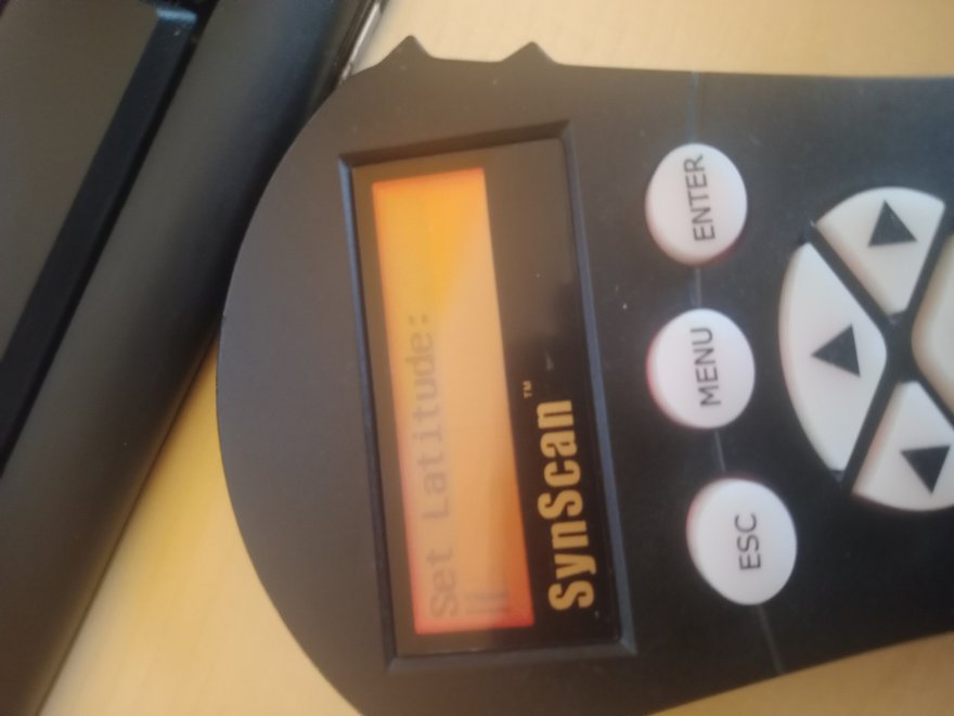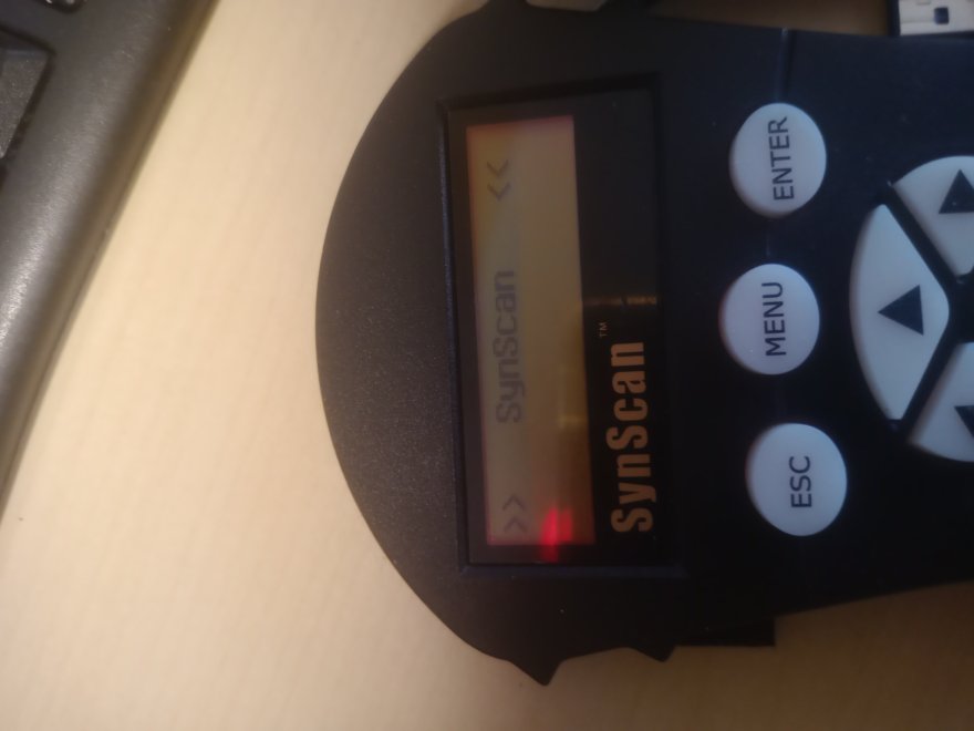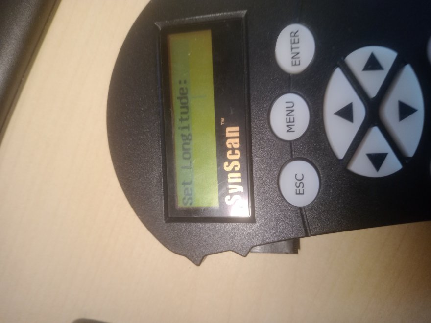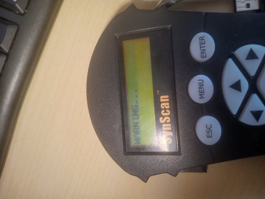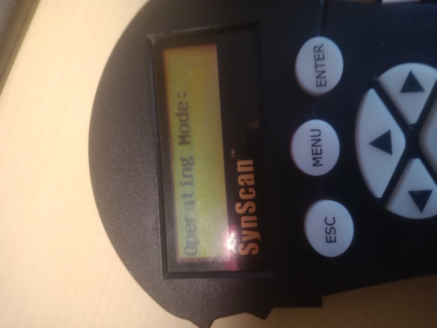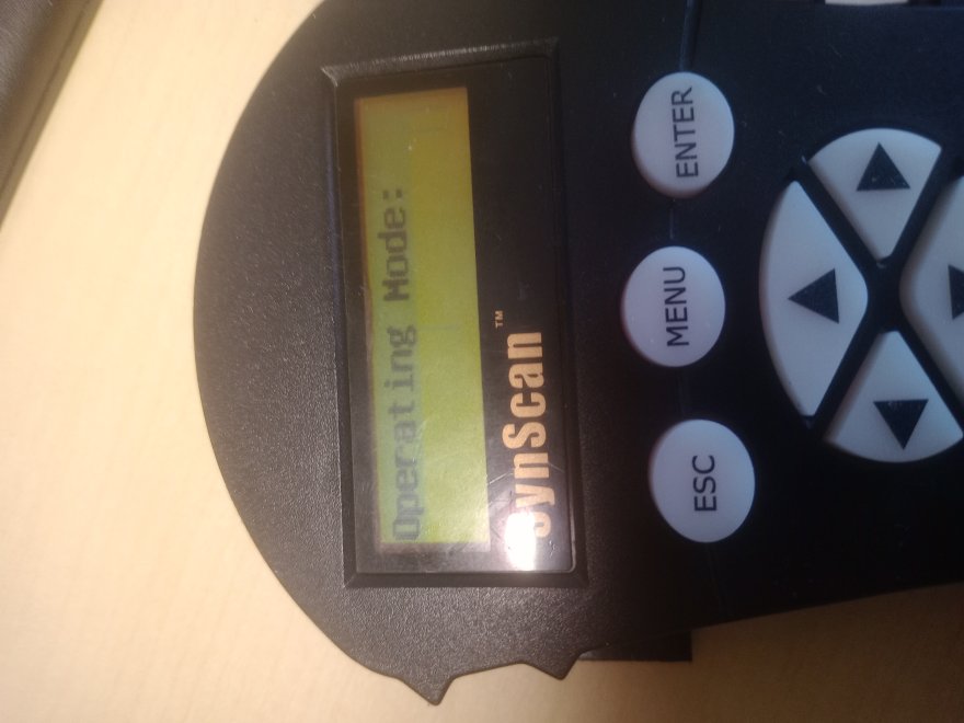 Pulsantiera synscan 4 dopo caduta alla accensione compare un menu anomalo 1 inizializzazione 2 operarating mode: 3 synscan 4 warning 5 set longitudine e tutte le altre impostazioni (digitando si sposta solo la lineetta verticale sul displey ma non compare alcun numero vedi foto. Premendo i tati direzionali