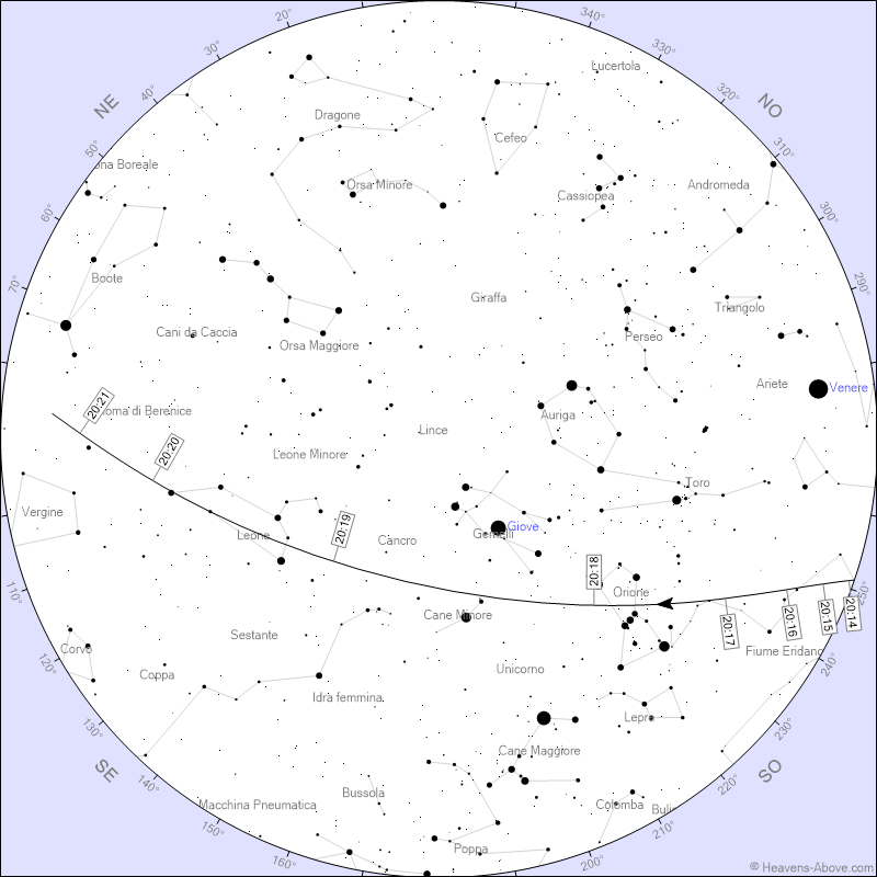 tutto questo per dire che, osservando gli orari e l'orbita tracciata da Heavens Above (l'app sul tablet o il sito sul PC) è facilissimo seguire nel cielo il volo di un bel puntino luminoso attraverso le stelle, con la costellazione di Orione ancora ben visibile.