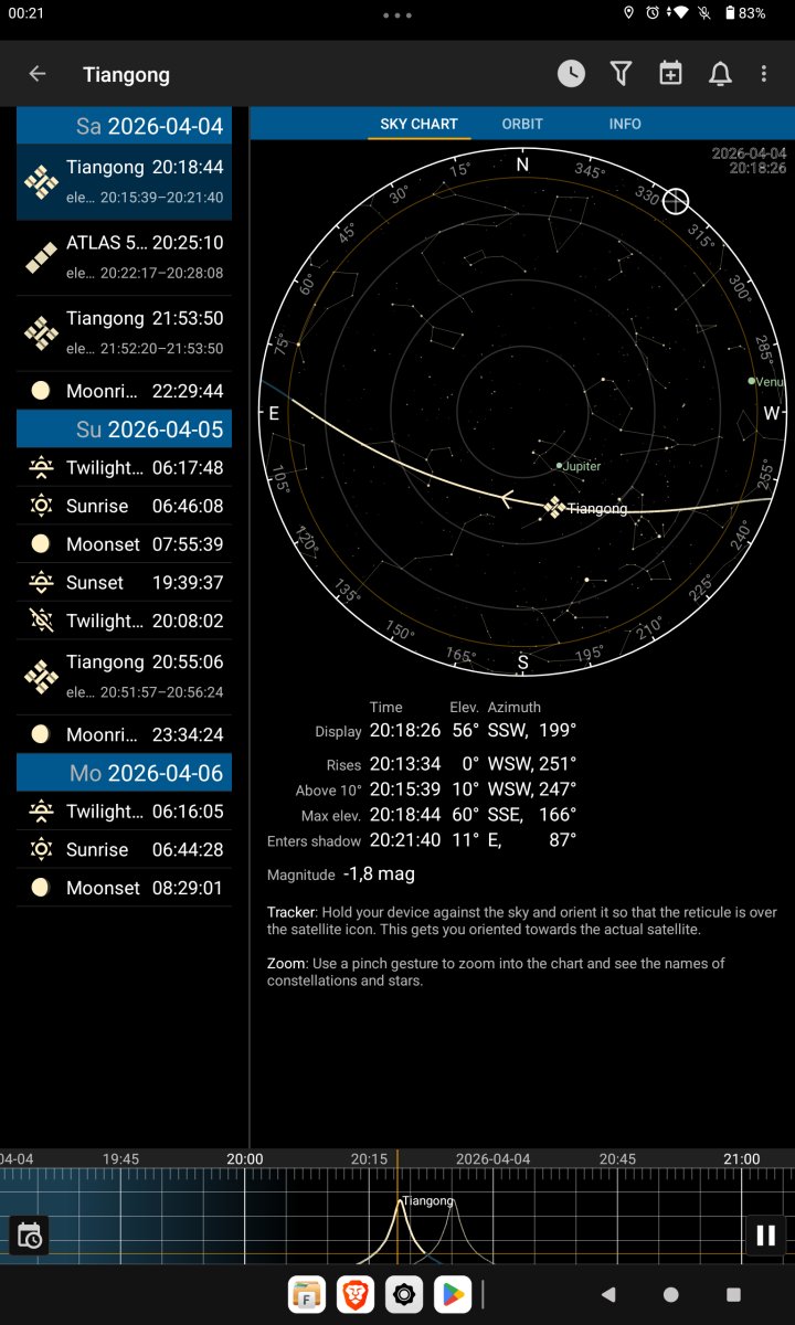 nel sito di HA la tabella dei vari passaggi della CSS di ieri non riportava più il passaggio delle 20:15 (presente nell'app), che è riapparso solo oggi, 5 aprile, cliccando sul simbolo "<" per vedere gli ultimi passaggi dei giorni precedenti...