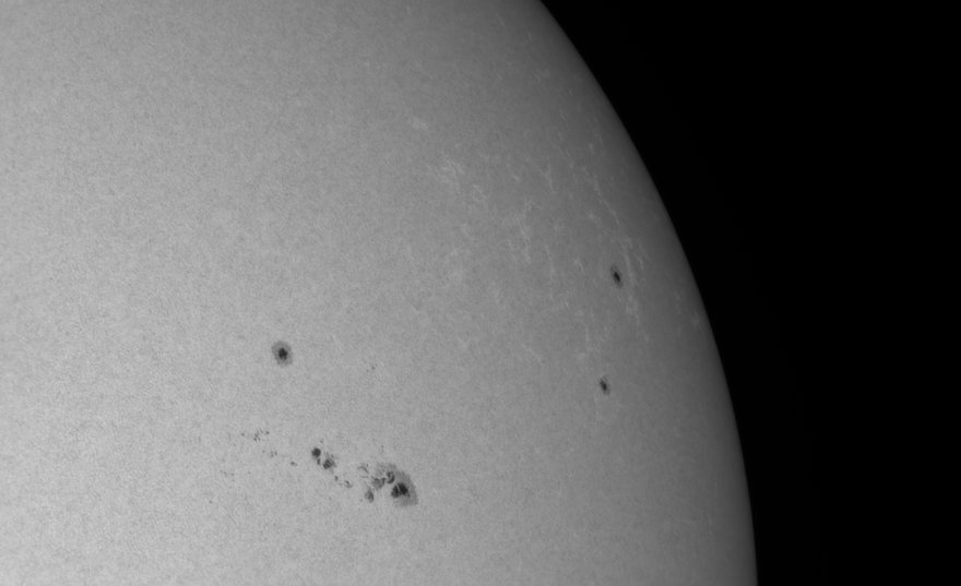 Una ripresa di oggi eseguita alle 14:30 circa, nonostante il seeing era piuttosto scarso ho deciso di riprende questa porzione interessante e bella in visuale che ritrae la regioni 4408/4409 formando un bel arcipelago e piu sul bordo le 4406/4404 immerse in una bella regione piena di facole.