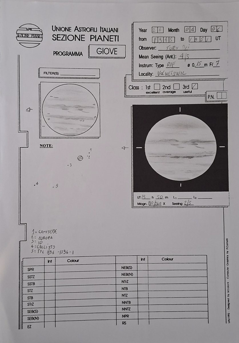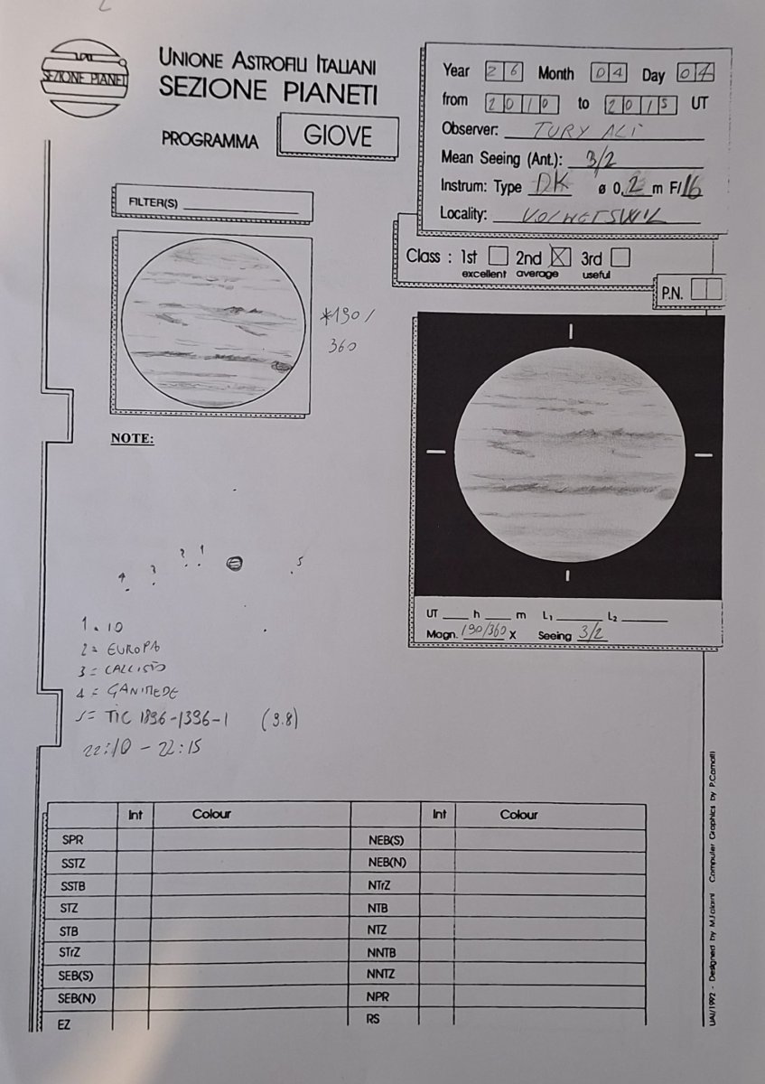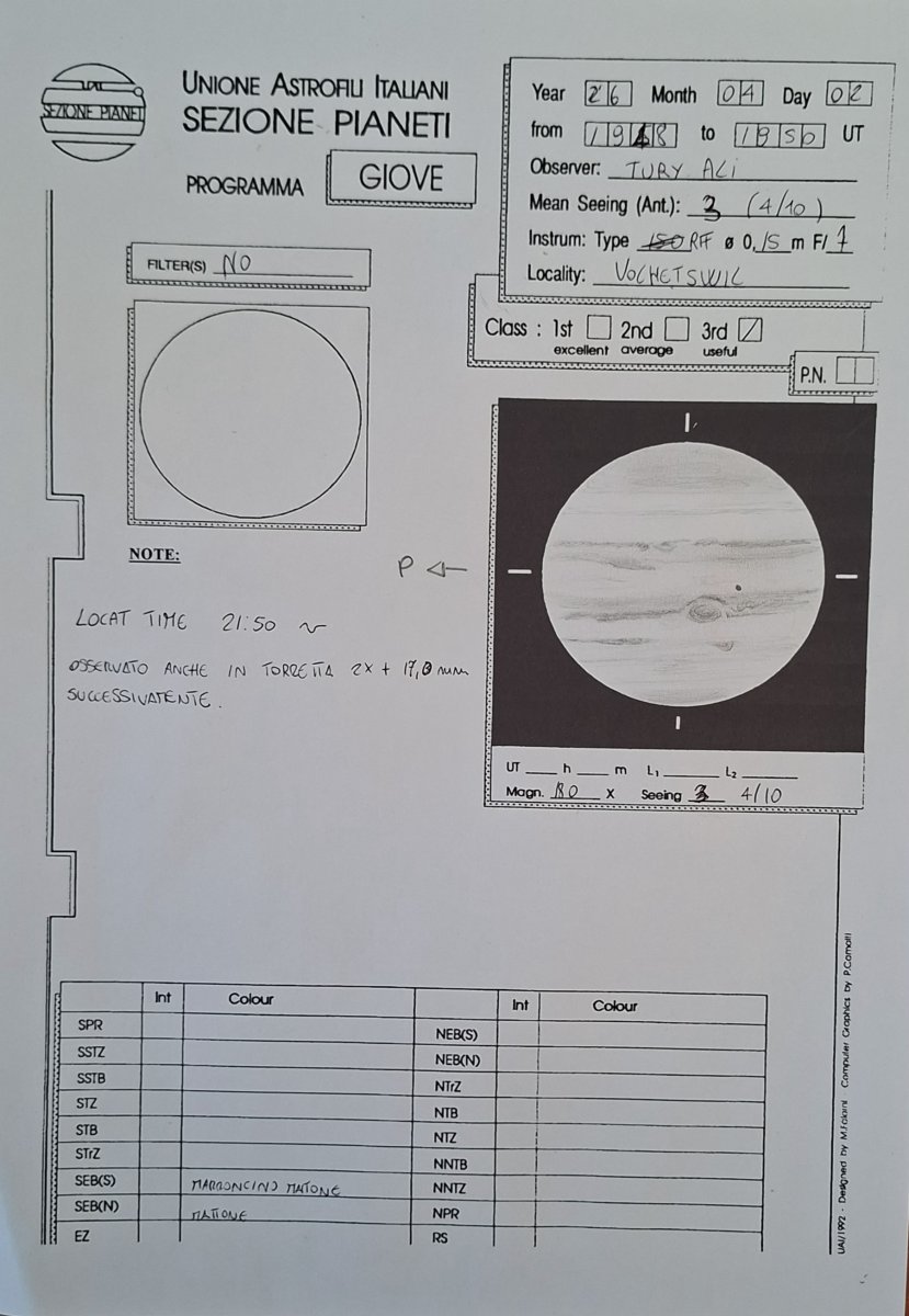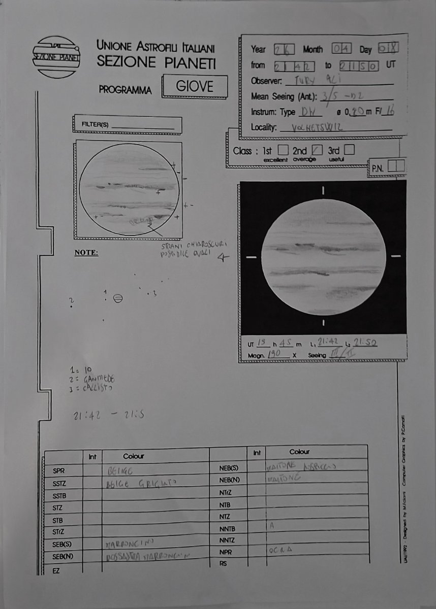 Era da anni che pensavo di stampare una scheda di Giove così da potere conservare in modus piu "adeguato" i disegni del pianeta.