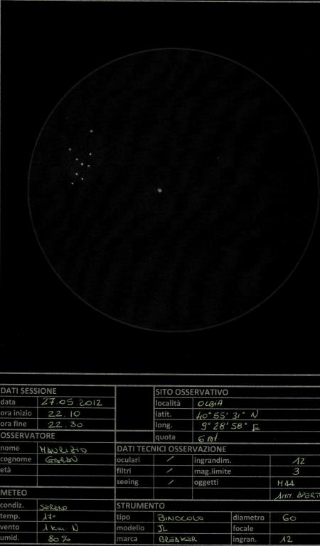 questo è un esempio di un disegno che ho fatto di M44 incastrato tra la luna e un lampione visto con un binocolo.