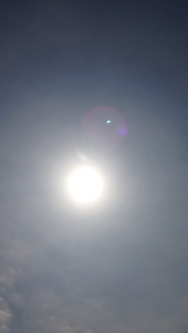 Perciò quella cosa informe che vedi dominare è l'immagine (sovraesposta completamente) del Sole; il fatto che tu non lo veda eclissato equivale ad aspettarti di vedere dove fosse un foruncolo sul fianco di un elefante dopo che su detto foruncolo hai sparato con un cannone.