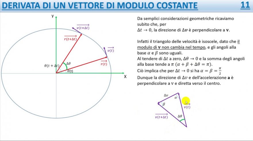 Qui è dimostrata solo la perpendicolarità della velocità rispetto all'accelerazione anche per tempi infinitesimali.
