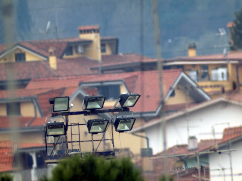 Queste sono le luci dello stadio della mia sorridente cittadina e non puntano esattamente solo in basso ... anzi !