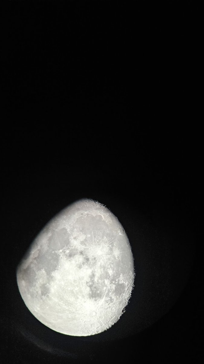 Celestron C8, diagonale di default e Plossl 40 mm di default, Samsung galaxy S23 appoggiato sopra l'oculare, scatto in modalità automatica.