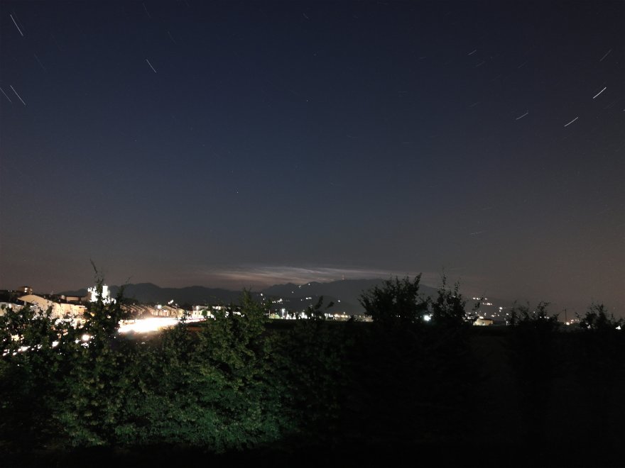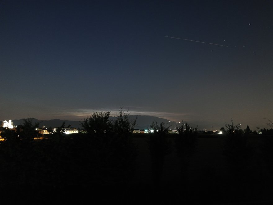 Vi mostro quelle che sono state, almeno per me, le prime nubi nottilucenti della stagione. La qualità è quella di due scatti fatti in fretta e furia con lo smartphone appoggiato al tavolino sul terrazzo. Le nuvole sono apparse in modo suggestivo dopo le 22:30 di ieri in corrispondenza di alcune cime delle Prealpi (per chi è della zona, è riconoscibile il Linzone).