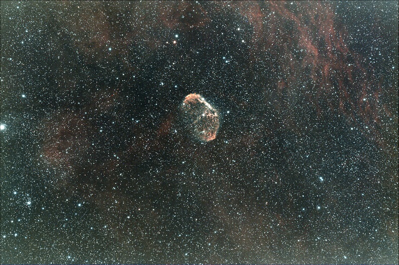 La foto di NGC 6888 è stata presa a gain 100, T = -10°C, producendo, tramite Sharpcap, 5 immagini ciascuna formato dallo stacking di 10 immagini di 3 minuti.