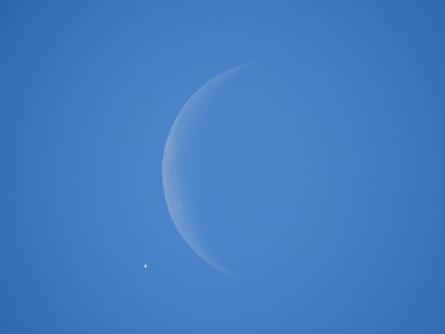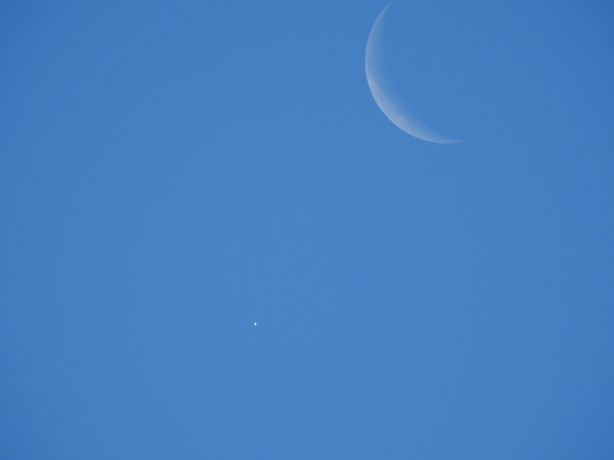 se guardate bene, Venere occhieggia tra le nuvole, vicinissima oramai alla Luna, quasi nascosta.