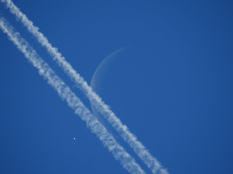 All'improvviso, m'ha preso un accidente! Un aereo con tanto di scia è passato proprio davanti alla coppia astrale!!!