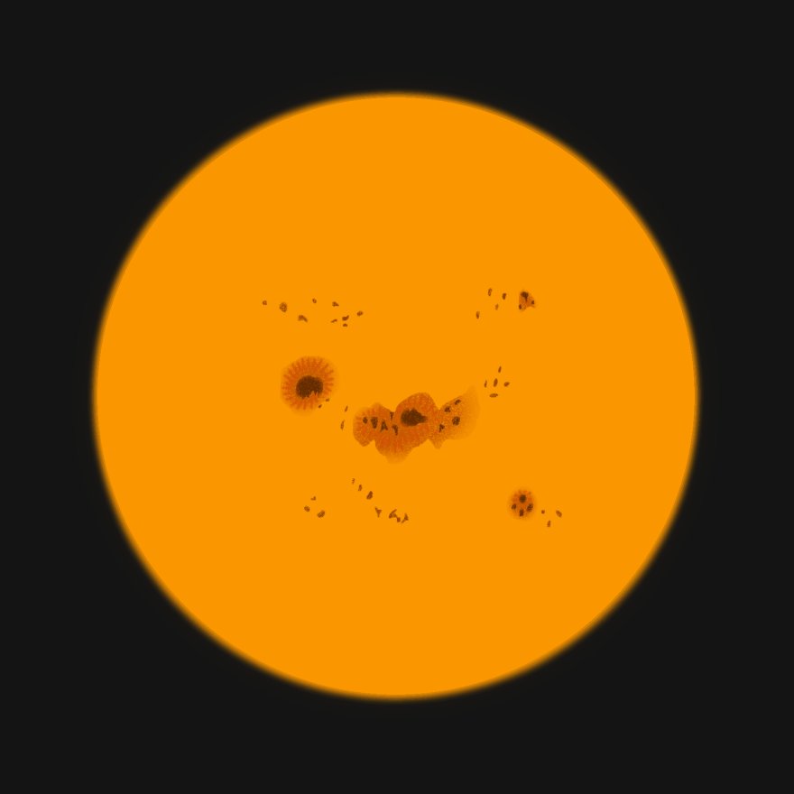 Osservazione di questa mattina dalle 10:25 alle 10:45 con il rifrattore da 100mm in binoculare a 195 ingrandimenti e filtro #23.