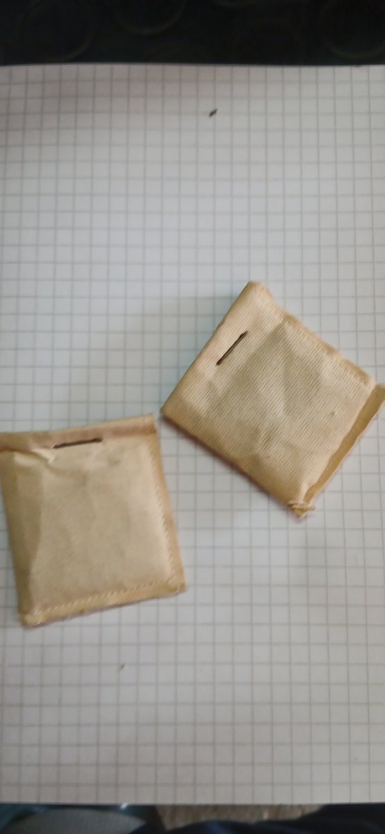 Questi sarebbero due sacchetti di silica gel di circa 70 anni fà , non è carta è stoffa .Allegato 55385