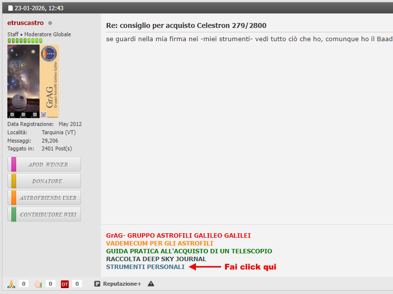 dal profilo non vedo nulla, sono andato anche su astrofriends ma non riesco ....