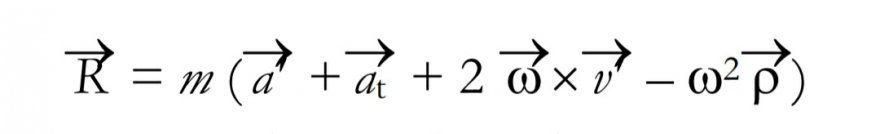 la forza centrifuga ha anche una componente proporzionale all'accelerazione angolare del sistema di assi