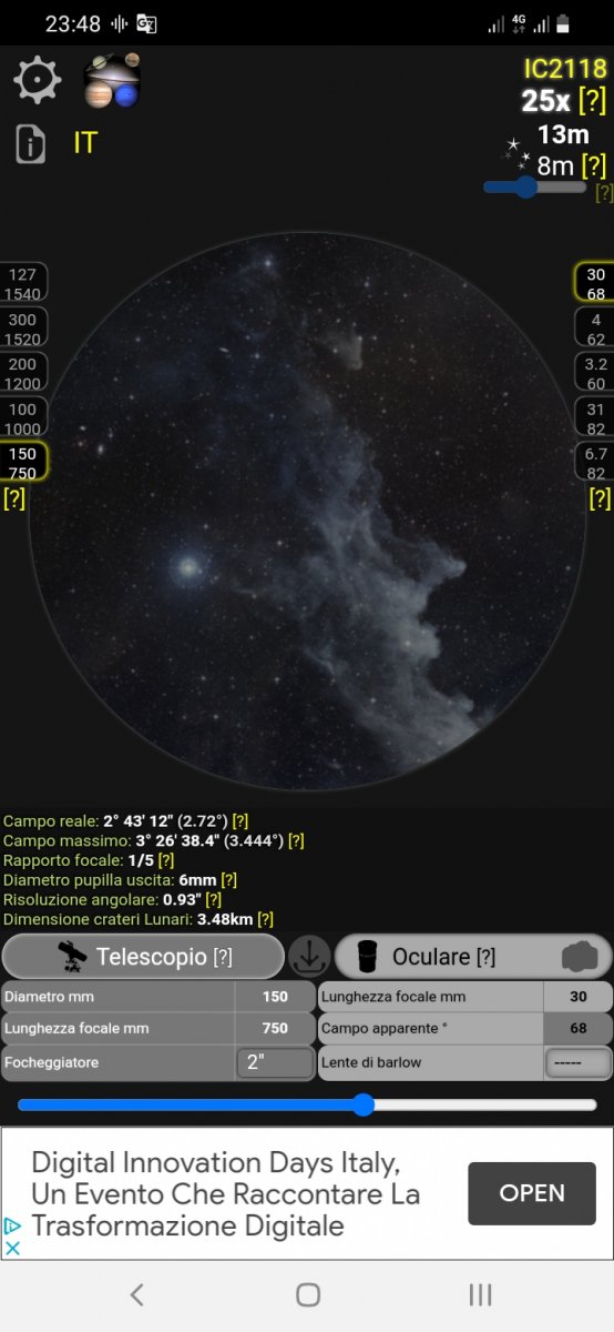 parti da qua, e poi decidi in base alle tue personali esigenze se acquistare un oculare più spinto o uno mediano o, addirittura, spostare la concentrazione su filtri o accessori vari.