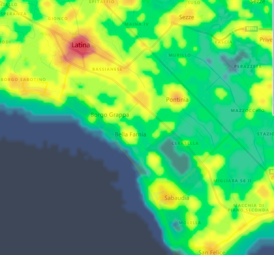 Come per esempio latina, il problema è che invece nelle campagne e colline le zone buie stanno diminuendo notevolmente.