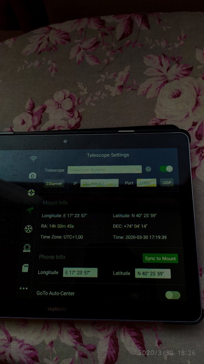 @iaco78 La Gti non e una montatura A cinghie con ciò devi solo regolare l'aggressività facendo tentativi, sai meglio di me che guidare a sud non è come guidare a nord lo spostamento della stella a sud è più veloce che a nord. deve stare solo attento dopo le correzioni deve resettare.