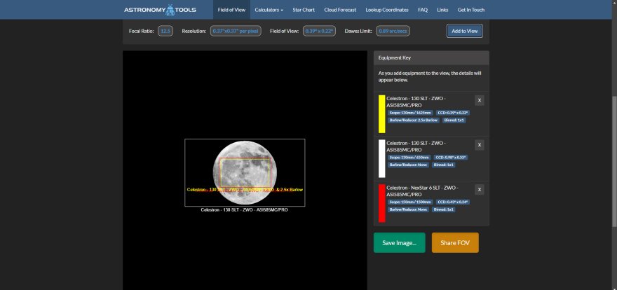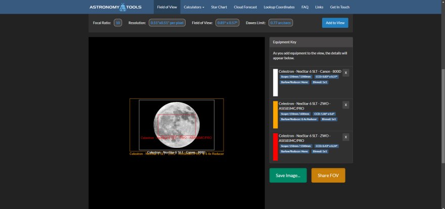 Hai però una focale più corta e quindi puoi riprendere la Luna. E' anche vero che non sempre fotografi la Luna piena e quindi hai dimensioni del satellite più piccole sul sensore, anzi la Luna piena, solitamente non si fotografa con un telescopio.