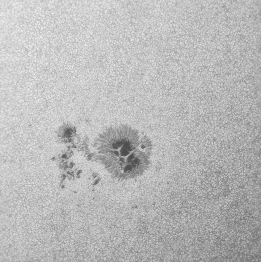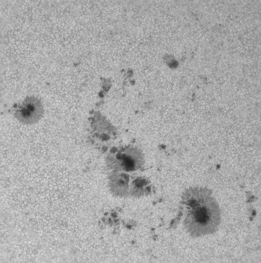 Dovrei far vedere il sole in quest'ultima settimana di scuola agli studenti delle mie quinte colla tecnica della proiezione su uno schermo bianco, il gruppo di macchie 4079 capita a proposito. Avvicinando molto il cellulare allo schermo di proiezione ho visto che vengono delle fotografie del sole che non dispiacciono, penso di farlo fare anche ai miei studenti colle dovute precauzioni. La cosa č sia simpatica sia un modo diverso di avvicinarli alla fisica in modo diverso dalla classica lezione fatta in classe (qualche cenno alla teoria del corpo nero vedo di darlo come spiegazione teorica perché le macchie solari si vedono nere).