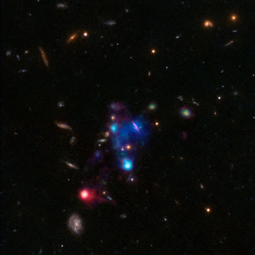 Con una dimensione di 300’000 anni-luce, tre volte il diametro della Via lattea, questa bolla colorata di gas ionizzato è la più grande mai scoperta. Quest’enorme bolla contiene 10 galassie individuali ed è situata in una regione particolarmente densa di un gruppo di galassie chiamato COSMOS-Gr30, ad una distanza di 6.5 miliardi di anni-luce dalla Terra. Scelto per la sua alta densità di galassie, questo gruppo è estremamente variegato - alcuni galassie stanno attivamente formando delle stelle mentre altre sono passive, alcune galassie sono brillanti mentre altre sono deboli; alcune sono massicce mentre altre sono piccole.