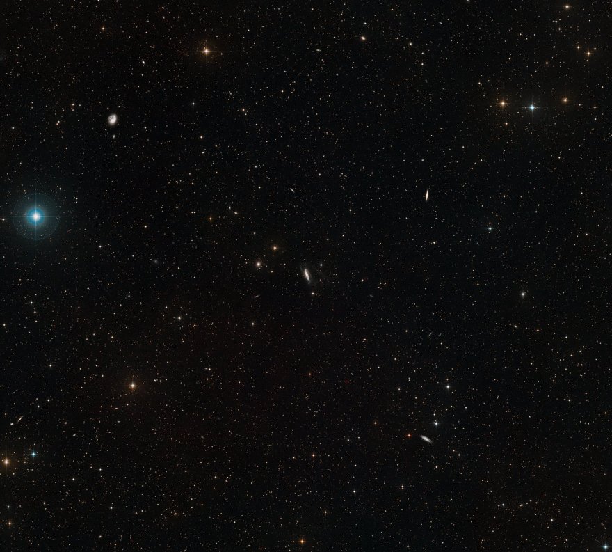 Innumerevoli galassie pretendono attenzione in questa immagine gigantesca dell'ammasso di galassie della Fornace: alcune appaiono come semplici punti di luce, mentre altre dominano la scena. Una di queste ultime è la galassia lenticolare NGC 1316. Il passato turbolento di questa studiatissima galassia ha lasciato una delicata struttura di nodi, archi e anelli che gli astronomi hanno ritratto con un dettaglio mai raggiunto prima utilizzando il telescopio VST (VLT Survey Telescope). Questa immagine incredibilmente profonda rivela anche una mirade di oggetti fiochi e una debole luce diffusa tra una galassia e l'altra.