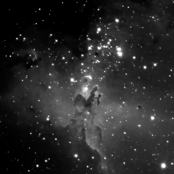 In questo test ad esempio, ho integrato 2 riprese dello stesso campo: la prima consiste in una ventina di minuti (pose di 5 secondi) con filtro IR Pass mentre la seconda, effettuata a distanza di una settimana dalla prima, e' fatta di 25 minuti (pose da 1 secondo) con filtro UHC.