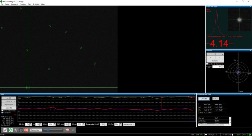 Sicuramente l'obiettivo per me e' di avere stelle tonde (con RMS simile tra AR e Dec). Se poi vengono anche grosse (piu' grosse in realta', in quanto riprendo con IR742 e le stelle vengono grosse a prescindere), eventualmente posso intervenire piu' facilmente in fase di post processo rispetto a quando sono ovali.
