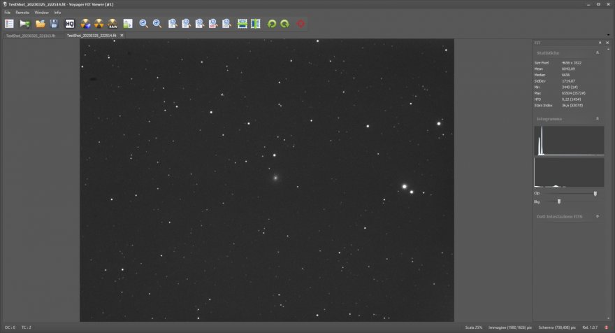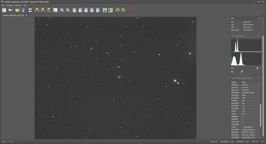 Al momento utilizzo invece un riduttore che riduce la focale di guida di 0.72x (calcolo fatto tramite il plate solving di Astrometry.net).