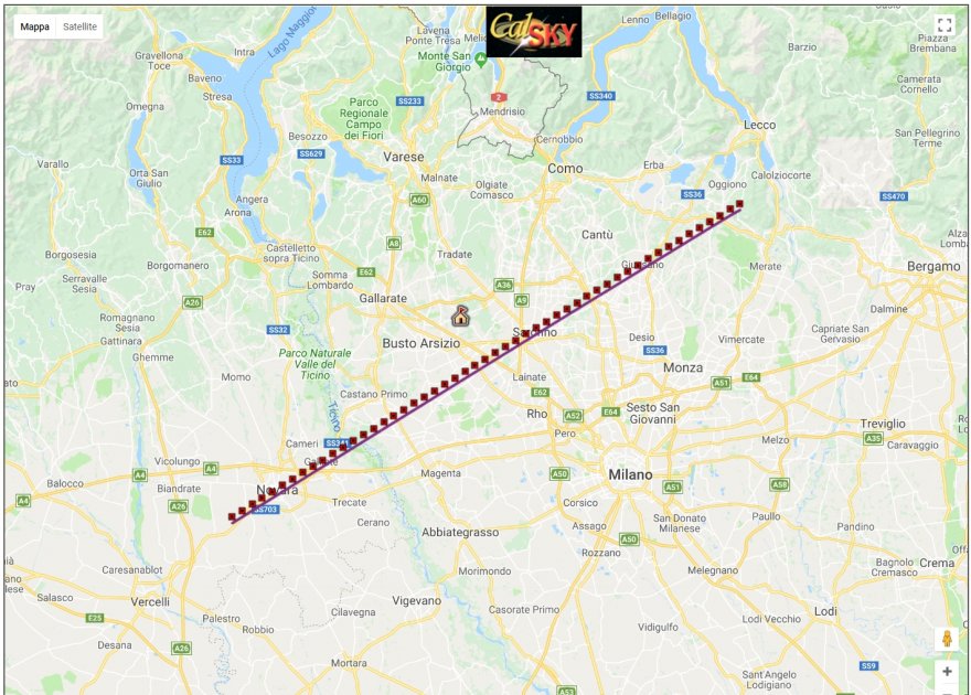 se il satellite, nel nostro caso la ISS, passa vicino mette anche un link "centerline" se lo clicchi esce la mappa sopra in maniera che se vuoi spostarti per osservare l'evento sai dove andare