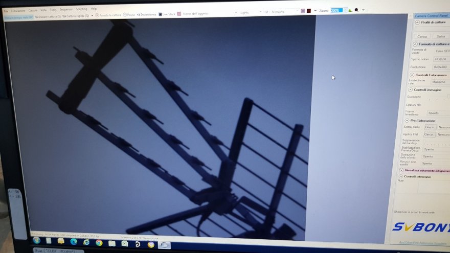 e questo il risultato su SharpCap 4.0 fotografato con lo smartphone sul display del PC:
