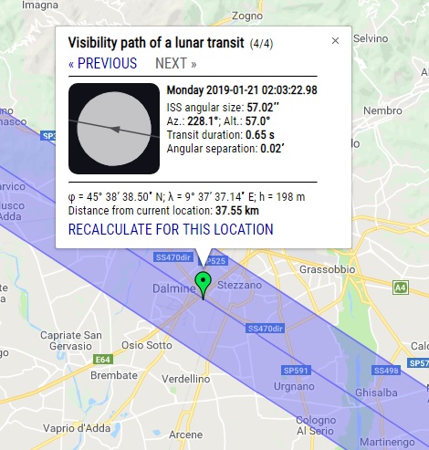 passaggio davvero top quello di oggi. Appuntamento per le 1840 circa, da NO verso SU. Magnitudine sorprendente;););)