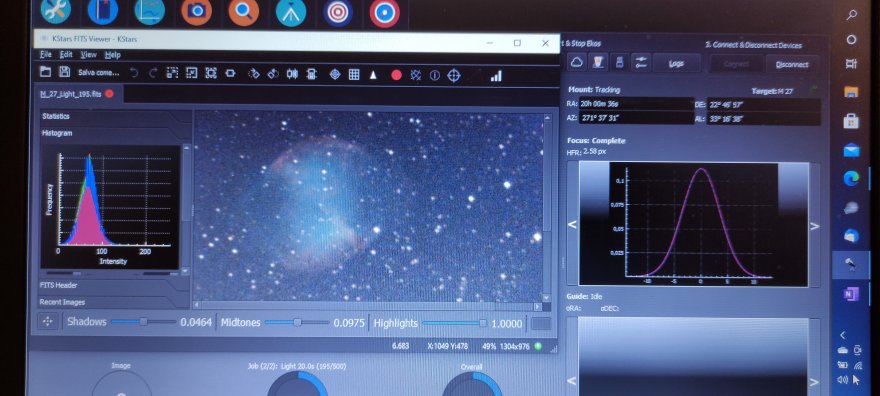 A prima vista quindi, sembrerebbe che effettivamente stressando meno il raspi che, condivido è un giocattolone, le cose funzionino meglio. Ripeto, ho installato KSTARS su PC win e da li inserito i parametri (IP e porta serve remoto del server INDI) all'interno del pannello di configurazione della montatura, ecc.