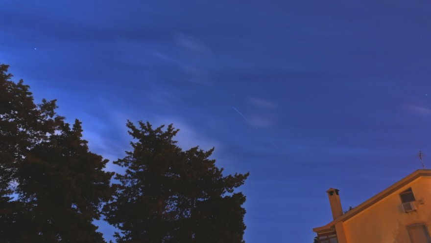 Mi chiedo chi era prima, non era un aereo perché la luce piano piano si spegneva ( i pannelli solari non riflettono più) però e stato divertente.